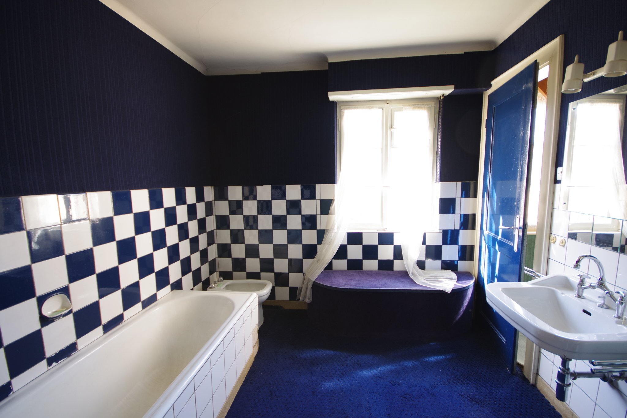 Dans le pur style des années 50, vous trouverez au rez-de-chaussée un séjour, un bureau ainsi qu’une grande salle à manger et cuisine, le tout accessible par la grand entrée.